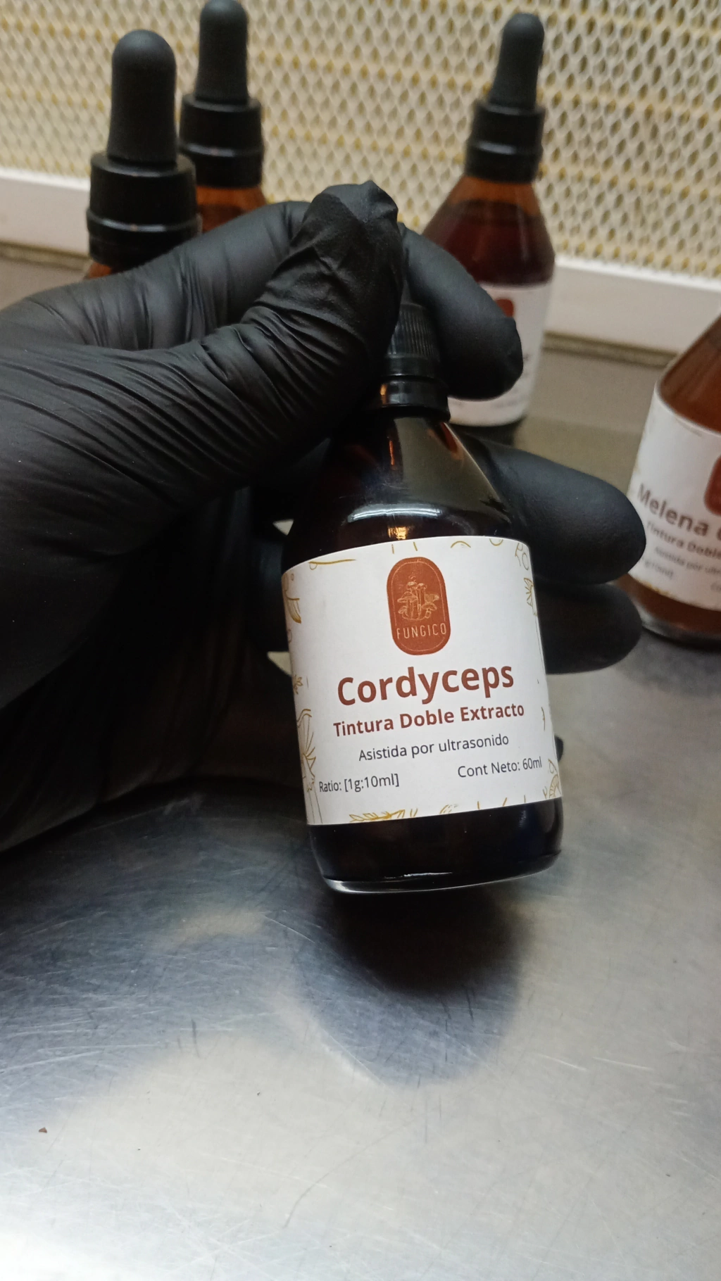 Potente y altamente biodisponible, nuestra tintura de Cordyceps es elaborada mediante un proceso de doble extracción (alcohol y agua) para asegurar la máxima concentración de compuestos activos como los beta-glucanos, cordicepina y adenosina. La extracción es asistida por ultrasonido, una tecnología que mejora la ruptura celular del hongo, permitiendo una liberación más eficiente de sus principios activos y optimizando su absorción por el organismo.