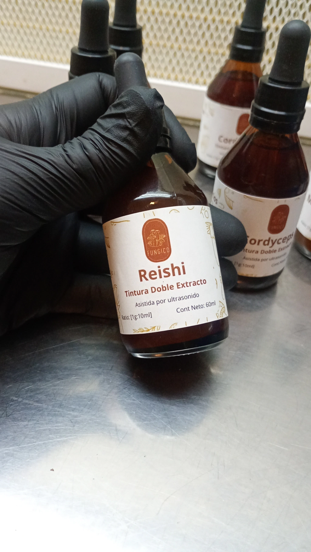 Nuestra tintura de Reishi (Ganoderma lucidum) es un doble extracto (hidroalcohólico + decocción acuosa) elaborado con una innovadora asistencia por ultrasonido, lo que permite una extracción más profunda y eficiente de los compuestos bioactivos del hongo.